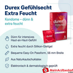 Die Durex Gefühlsecht Extra Feucht Kondome sind dünn ausgeführt für ein intensiveres Haut‑an‑Haut‑Gefühl und eignen sich für Paare, die zusätzliche Gleitfähigkeit wünschen. Sie sind zur Anwendung beim vaginalen, oralen und analen Geschlechtsverkehr vorgesehen und kombinieren Komfort mit geprüfter Qualität.