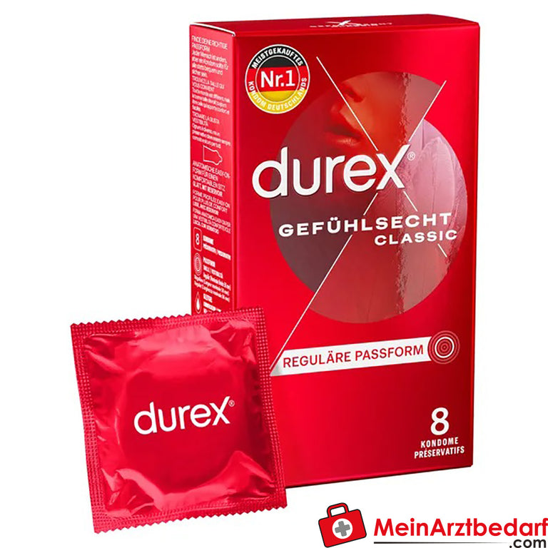 Durex Gefühlsecht Kondome extra dünn aus Naturkautschuklatex 56 mm Reservoir 195 mm, 8 St