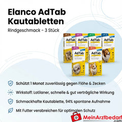 Lieferumfang: 3 Elanco AdTab Kautabletten für Hunde, Wirkstoff Lotilaner, Rind-Geschmack, 1‑Monats-Schutz – Hersteller: Elanco