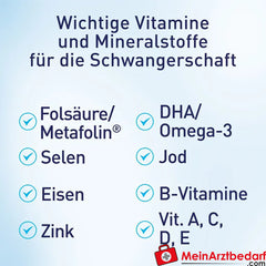 • Dieses Produkt bietet eine ergänzende Nährstoffversorgung während der Schwangerschaft. Bitte Packungsbeilage beachten und bei bestehenden Erkrankungen ärztlichen Rat einholen.