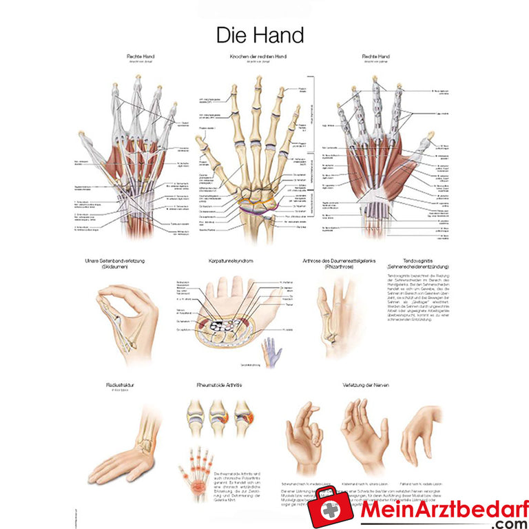Lehrtafel Die Hand anatomisch 70×100 cm Kunststofffolie mit Metallleisten & 50×70 cm Kunstdruckpapier DE/EN, 50x70cm