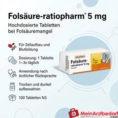 Lieferumfang: 1 Packung ratiopharm Folsäure 5 mg Tabletten – Hersteller: ratiopharm