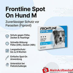 FRONTLINE® SPOT ON mit Fipronil bietet gezielten Schutz gegen Flöhe, Zecken und Haarlinge bei Hunden. Die spot-on-Pipetten ermöglichen eine einfache Anwendung und reduzieren das Risiko durch von Parasiten übertragene Erkrankungen.