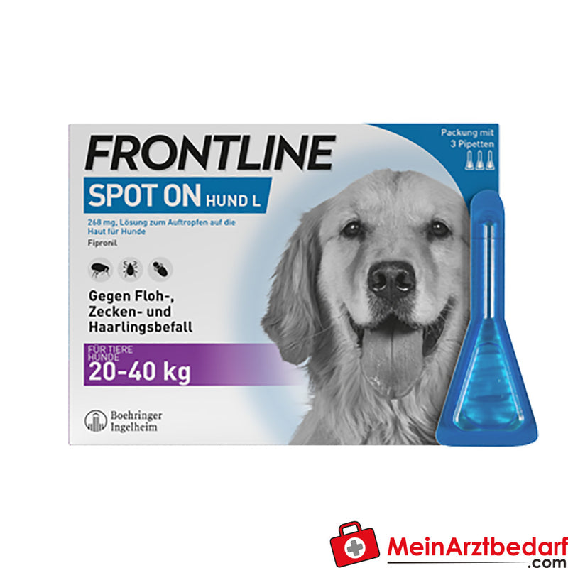 Lieferumfang: 3 Stück Frontline Spot on Hund L 20–40 kg, Spot-on-Einmalpipetten – Hersteller: Frontline