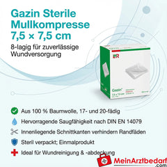 Gazin sterile Mullkompresse, 8‑lagig, 7,5 × 7,5 cm