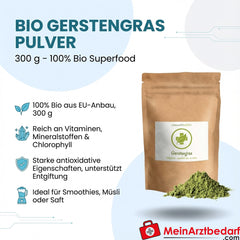 Lieferumfang: 1 Packung Bio Gerstengras Pulver, 300 g (100% Bio). Hersteller: Vitalundfitmit100