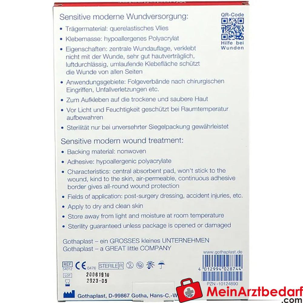 Lieferumfang: 5 St. GoTa-Por Wundpflaster steril 15 × 10 cm, querelastisches Polyester‑Vlies, einzeln verpackt.
