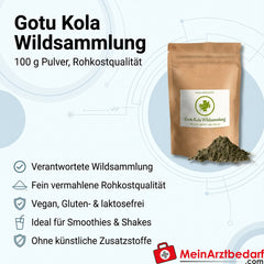 Fein vermahlenes Gotu Kola Pulver aus verantworteter Wildsammlung, geeignet zum Einrühren in Smoothies, Säfte oder Shakes. Rohkostqualität für optimale Nährstoffaufnahme, vegan sowie frei von Gluten, Laktose und künstlichen Zusatzstoffen. Ideal für die tägliche Ernährungsergänzung .