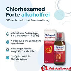 Chlorhexamed Forte alkoholfrei 2 mg/ml Lösung zur Anwendung in der Mundhöhle dient der Behandlung und Vorbeugung bakterieller Infekte in Mund- und Rachenraum und ist angezeigt