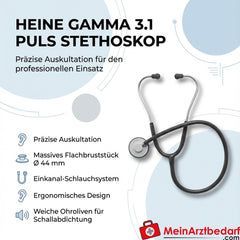 Lieferumfang: 1 x HEINE Gamma 3.1 Puls Stethoskop mit Flachbruststück Ø 44 mm und Einkanal-Schlauch – Hersteller: HEINE