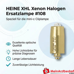 Die HEINE XHL Xenon-Halogen Ersatzlampe #108 liefert klare, kontrastreiche Beleuchtung für präzise Untersuchungen mit der mini-c Cliplampe. Hohe Lichtstärke und konstante Leuchtleistung unterstützen sichere Diagnosen und effiziente Arbeitsabläufe in Praxis und Klinik (Österreich, Deutschland).
