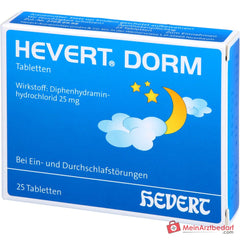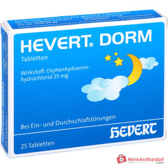 Hevert Dorm, Tabletten. Wirkstoff: Diphenhydraminhydrochlorid 25 mg Sedativum. Anwendungsgebiete: Einschlaf- und Durchschlafstörungen.