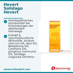 Solidago Hevert Complex, Mischung. Anwendungsgebiete: Die Anwendungsgebiete leiten sich von den homöopathischen Arzneimittelbildern ab. Dazu gehören: Entzündungen der ableitenden Harnwege. Warnhinweis: Enthält 60 Vol.-% Alkohol!