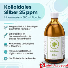 Kolloidales Silber 25 ppm Silberwasser 500 ml 99,99% Feinsilber
