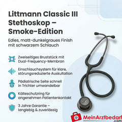 Das Classic III Smoke-Edition bietet eine belastbare Kombination aus Akustik und Alltagstauglichkeit bei routinemäßigen und spezialisierten Untersuchungen.