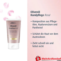 medipharma cosmetics Olivenöl Handcreme Rosé, 50 ml – intensive Pflege für trockene Hände