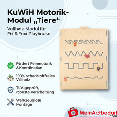 Lieferumfang: 1x Motorik‑Modul „Tiere“ (Vollholz, kompatibel mit Fix & Foxi Playhouse), werkzeuglose Steckmontage – Hersteller: KuWiH GmbH
