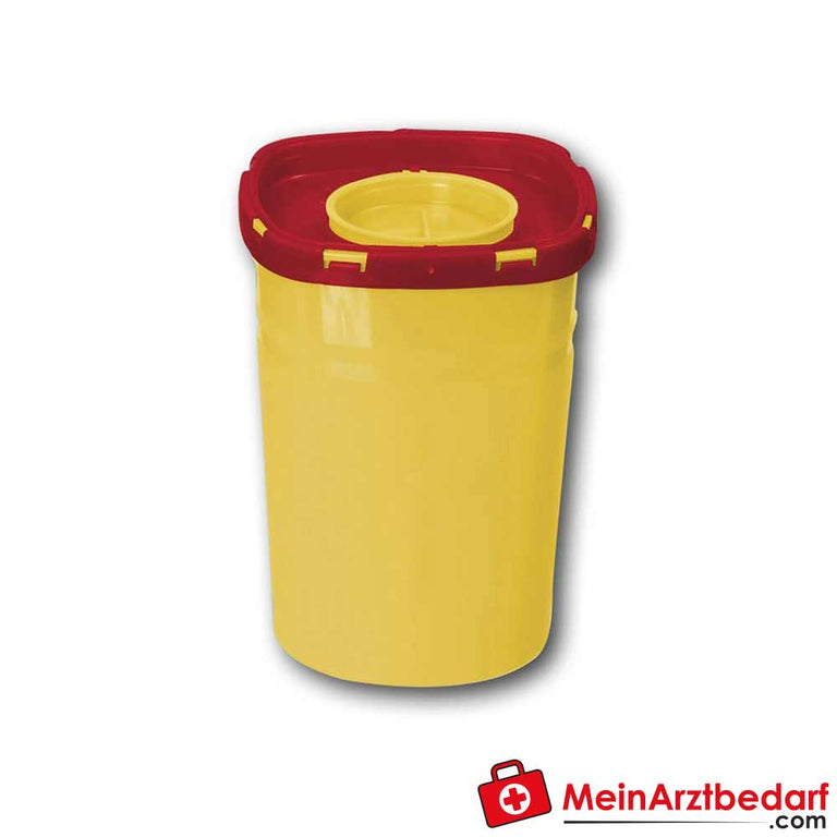 Zur Sammlung kontaminierter Kanülen und Spritzen; die ergonomische Abzieh- und Abdrehhilfe reduziert direkten Kontakt beim Umgang mit Einmalartikeln. Behälter gemäß TRBA 250, UN und DIN EN ISO 23097 konzipiert. Entsorgung entsprechend der jeweiligen Betriebsvorschriften und lokalen Entsorgungsrichtlinien.