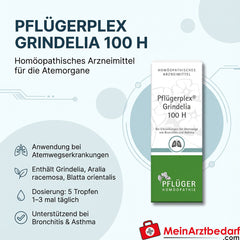 Pflügerplex Grindelia 100 H ist ein homöopathisches Arzneimittel zur unterstützenden Anwendung bei Erkrankungen der Atemorgane wie Bronchitis oder asthmatischen Beschwerden. Enthält eine Kombination aus klassischen homöopathischen Ausgangsstoffen.