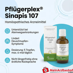 Pflügerplex Sinapis 107 ist ein homöopathisches Arzneimittel zur Unterstützung bei Beschwerden der oberen Atemwege und zur Linderung von Symptomen bei Heuschnupfen. Darreichungsform: flüssige Tropfen für die orale Anwendung.