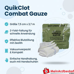 QuikClot Combat Gauze Z-Fold Zeolith-impregniert Vakuum-Pack 7,5 cm x 3,7 m