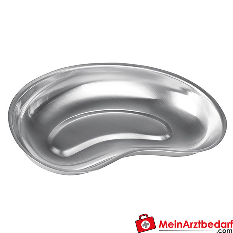Robuste, korrosionsbeständige Edelstahl-Universalschale in nierenförmiger Bauform für Praxis, Klinik und Haushalt . Platzsparendes, ergonomisches Design erleichtert Handhabung und Reinigung; ideal für Hygieneanwendungen und vielseitige Nutzung.