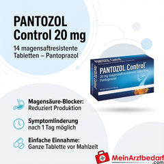PANTOZOL Control enthält den Wirkstoff Pantoprazol der eine Art Pumpe welche die Magensäure herstellt blockiert. Das hat zur Folge dass die Säuremenge im Magen reduziert wird. PANTOZOL Control wird angewendet zur kurzzeitigen Behandlung von RefluxSymptomen (z. B. Sodbrennen saures Aufstoßen) bei Erwachsenen. Reflux ist der Rückfluss von Magensäure in die Speiseröhre die sich schmerzhaft entzünden kann. Bereits nach einem Behandlungstag mit PANTOZOL Control können die Symptome von Rückfluss und Sodbrennen gelindert werden.