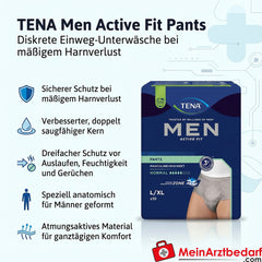 Lieferumfang: 1 Packung TENA Men Active Fit Pants Normal L/XL, grau, Einweg-Unterwäsche (Slip-Form) – Hersteller: TENA