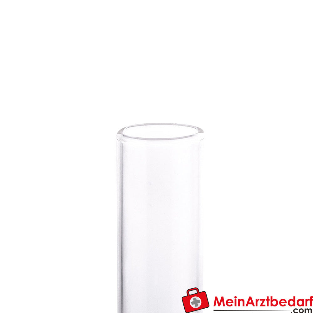 Das hochwertige Reagenzglas besteht aus langlebigem Borosilikatglas. Es ist extrem hitzebeständig, widersteht plötzlichen Temperaturschwankungen und vielen Chemikalien. Aus diesem Grund eignet es sich perfekt für vielfältige Laboruntersuchungen. Das Reagenzglas ist transparent und in verschiedenen Größen erhältlich.