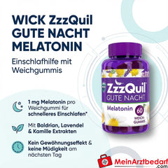 Lieferumfang: 30 Stück WICK ZzzQuil Gute Nacht Melatonin 1 mg Weichgummis (Weichgummi) – Hersteller: Wick Pharma Zweigniederlassung der Procter & Gamble GmbH