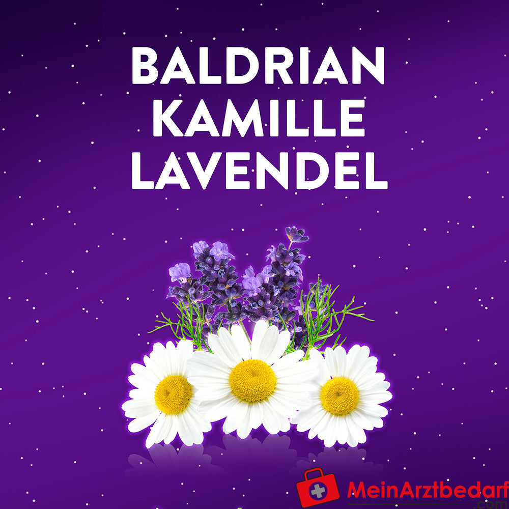 Weiche Einschlaf‑Weichgummis mit 1 mg Melatonin pro Gummi zur Verkürzung der Einschlafzeit*; kombiniert mit Baldrian-, Kamillen‑ und Lavendelextrakten sowie Vitamin B6. Natürlicher Mango‑Bananen‑Geschmack, laktose‑ und glutenfrei, ohne künstliche Farb‑, Aroma‑ oder Konservierungsstoffe.